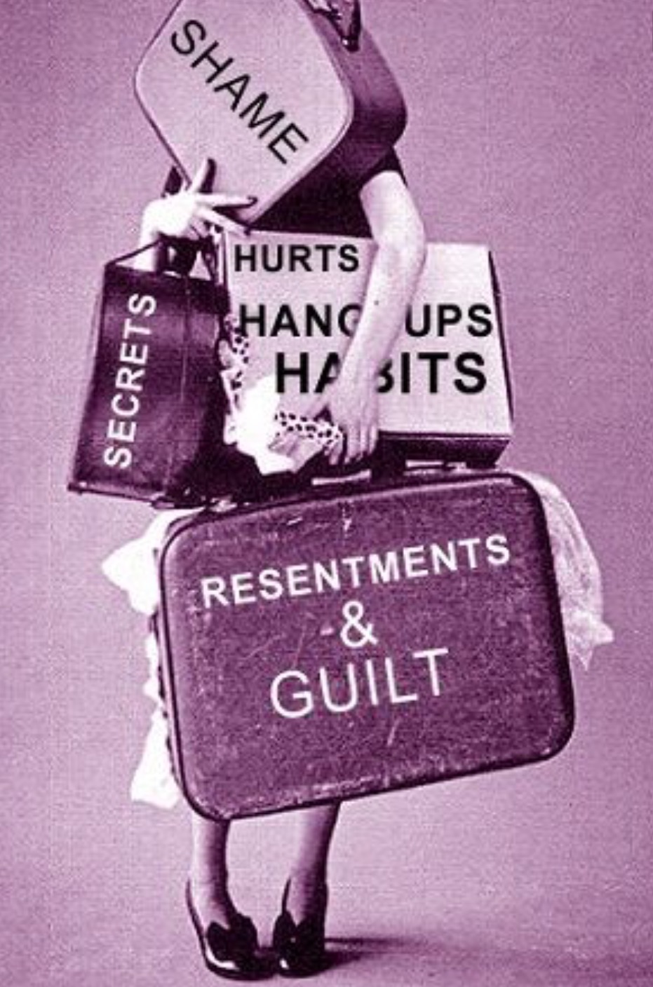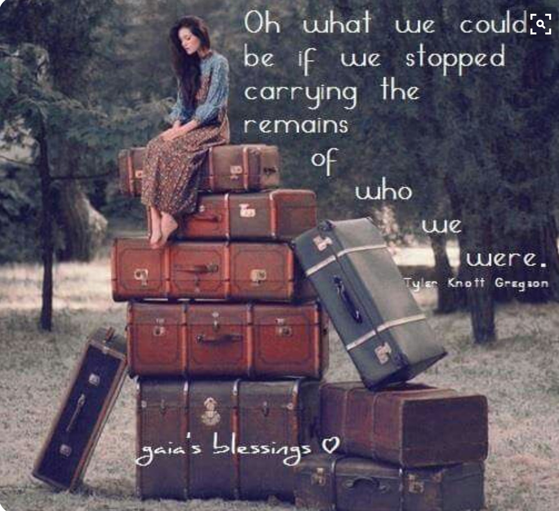 Definition: personal belongings packed in suitcases for traveling. Past experiences or long-held ideas regarded as burdens and impediments.