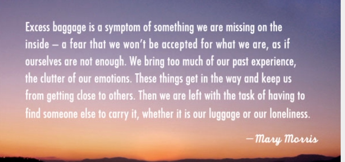Whew what a month, as I am sitting here typing these random thoughts that are floating from my head, I am craving a scrumptious cup of steaming hot Green Ginger Tea. It’s my new favorite blend. I debated between two topics to write about this week and finally decided to go with BAGGAGE! What do you think of when you hear the word BAGGAGE? For some reason Mary Poppins popped into my head with her button down coat, umbrella and her famous suitcase known as carpet BAG.